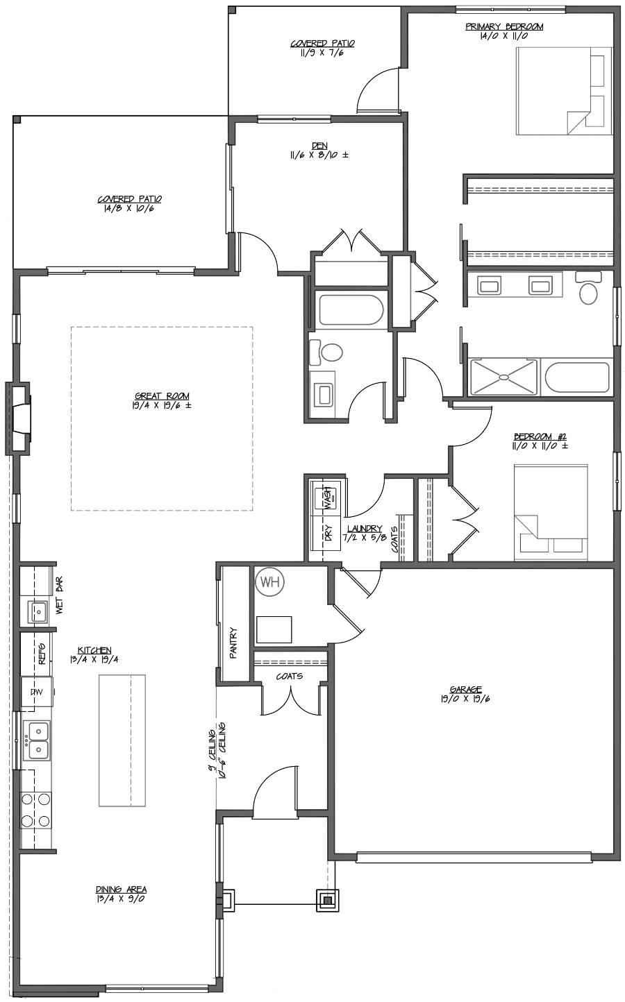 Soaring 11' ceilings in the main living area create a grand and airy ambiance, while 9' ceilings throughout the rest of the home provide an elegant sense of space and comfort.