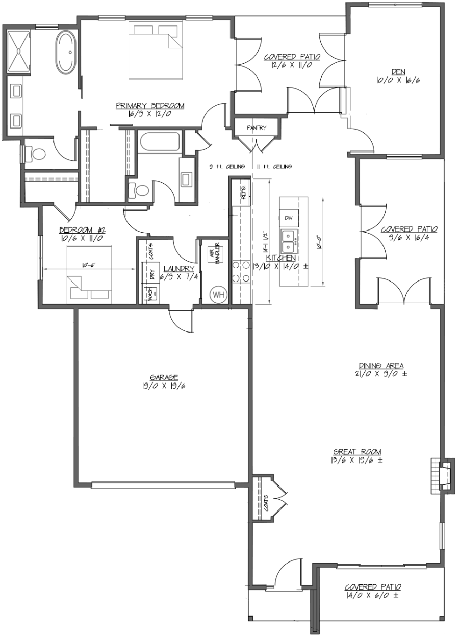 Soaring 11' ceilings in the main living area create a grand and airy ambiance, while 9' ceilings throughout the rest of the home provide an elegant sense of space and comfort.